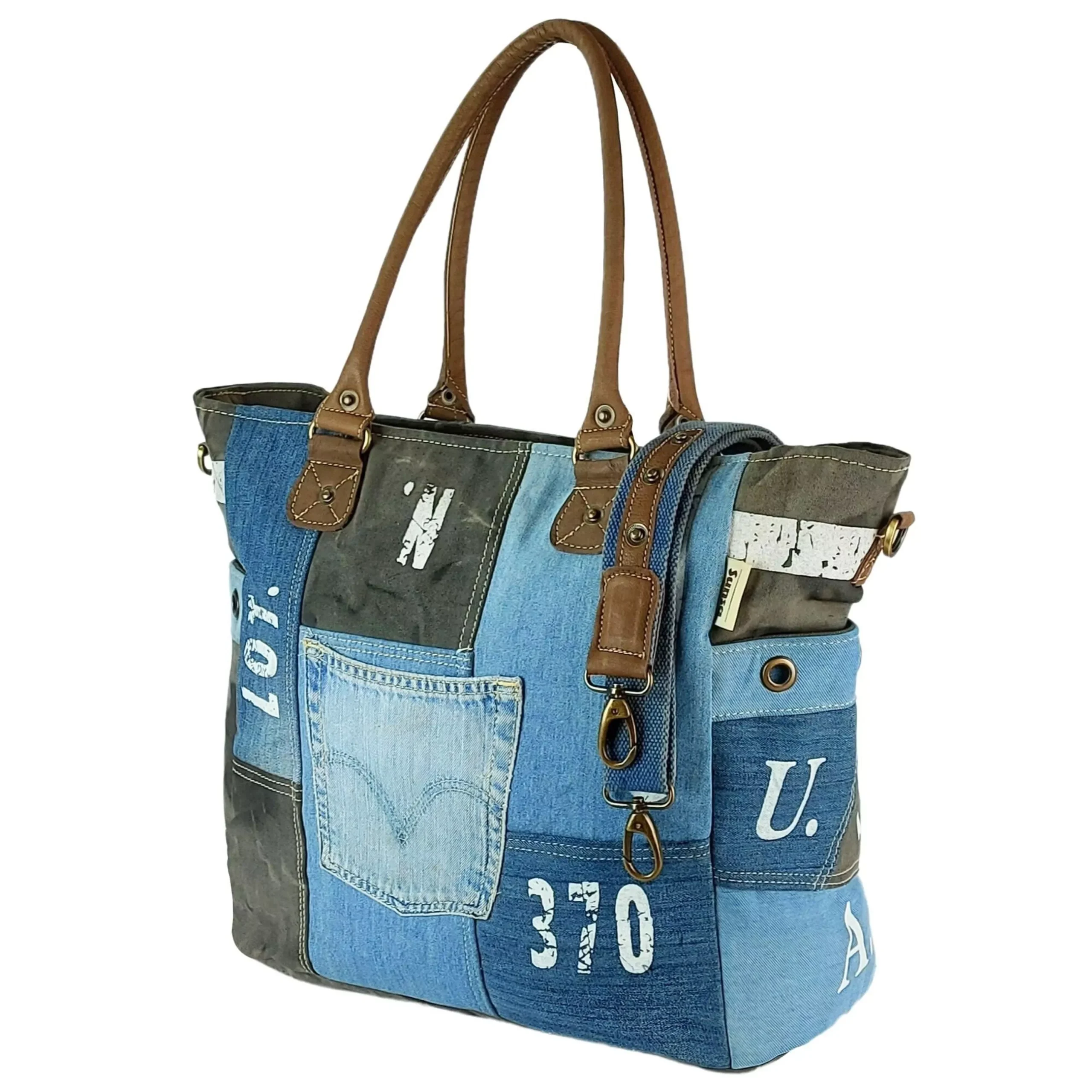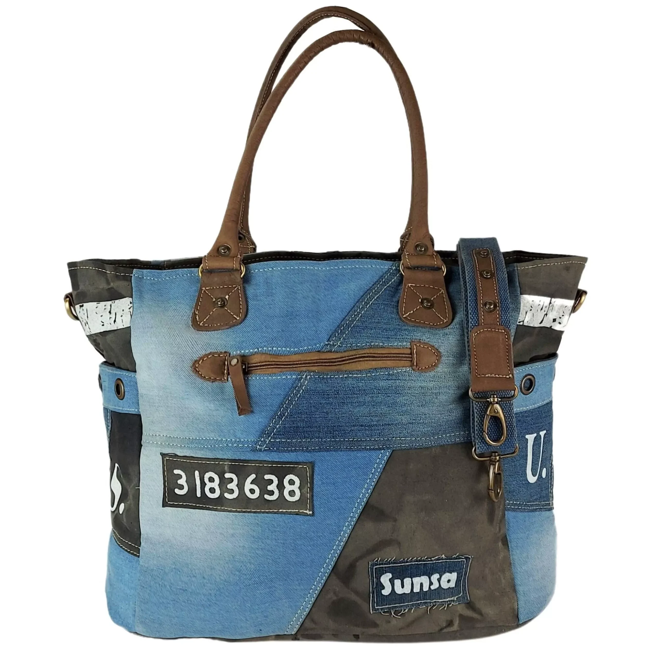 Ce sac cabas Doretta en jean recyclé séduit par son style à la fois moderne, urbain et authentique. Confectionné à partir de différentes pièces de denim recyclé, il présente un patchwork unique qui fait de chaque sac une pièce pleine de caractère. La poche en jean apparente sur l’avant rappelle l’esprit vintage du denim tout en ajoutant une touche pratique et originale.
