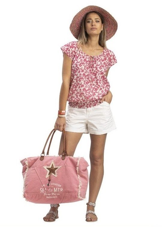 Sac cabas Sel de Mer rose, toile canevas et cuir